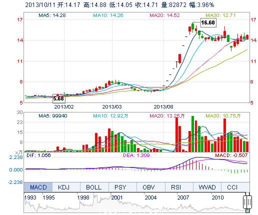 | 今 开: | 14.17 | 成交量: | 8.29万手 | 振 幅: | 5.87% |