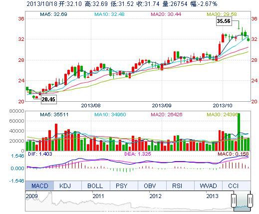 | 今 开: | 32.10 | 成交量: | 2.68万手 | 振 幅: | 3.59% |