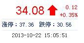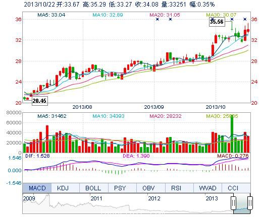 今开: 33.67 成交量: 3.33万手 振幅: 5.95% 最高: 35.29 成交额: 1.14亿元 换手率: 0.98% 最低: 33.27 总市值: 147.45亿 市净率: 9.58 昨收: 33.96 流通市值...