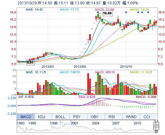 | 今 开: | 14.50 | 成交量: | 10.02万手 | 振 幅: | 8.91% |