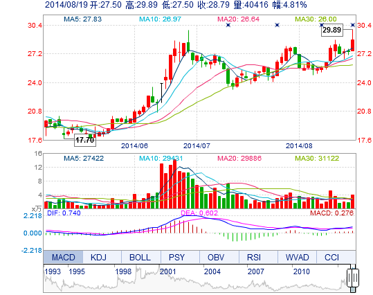 | 今 开: | 27.50 | 成交量: | 4.04万手 | 振 幅: | 8.70% |