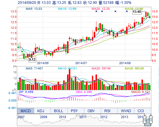 | 今 开: | 13.03 | 成交量: | 5.22万手 | 振 幅: | 3.21% |