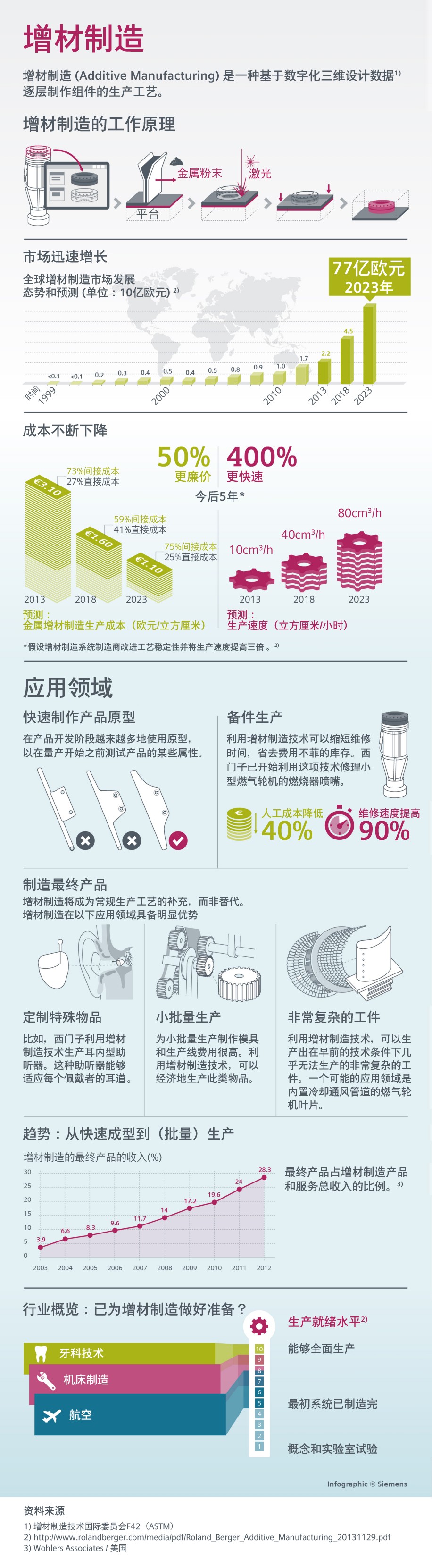 从原型生产到批量生产。虽然增材制造的初衷是“快速生成产品原型”,但是由于这一制造技术通常利用粉末状的不成形材料,因此不需要任何特殊模具或工具。这样,就可以避免花费时间和费用制作工具,譬如注塑模具等。