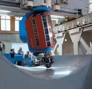 在生产热塑性复合材料时,预浸纤维的固结就是利用近红外光纤激光器完成的。和其他行业一样,激光器也可以更换光源。在整个自动铺带系统中,激光器是极为关键的部件(如图3、4所示)。这些机器可以高速生产复杂的3D部件,对激光光束时间及空间的精确控制,有助于强化闭环温度监控,提高熔融及固结工艺水平。随着激光加热系统(LHSs)的发展,AFP加热系统可进一步升级热气炬(HGT)。很显然,这也是未来的发展趋势。在这个领域 kW级光纤激光器随处可见。