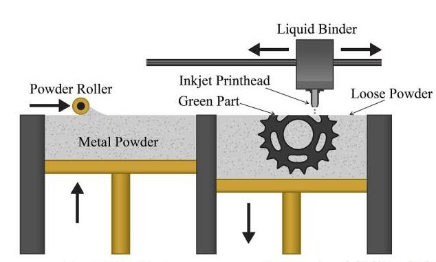 目前通过binderjetting粘结剂喷射技术来进行金属零件的3D打印的局限性在于零件的大小。早期的粘结剂喷射技术使用青铜渗透来减少相关的收缩和烧结问题,但是这改变了金属的材料特性,并且不被证明是生产零件可行的解决方案。不过较新的粘接剂喷射技术设备即将上市,希望解决构造尺寸问题,同时获得低成本零件和高产量的优势。
