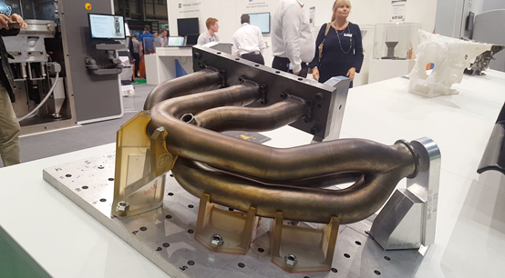 今年TCT展会上,合作伙伴3D Systems在展位上展示了大量支撑赛车排气系统的座椅夹具。这些夹具均采用SLA技术打印,即排气系统的金属端采用3D Systems的DMLS技术打印而成。这些并非是简单的部件制造,但利用3D Systems技术,在制造夹具、排气系统上起到了很大帮助。