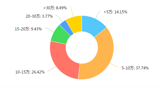 如图四所示,回顾2018年,2018年下半年,激光行业发展也稍微滞后,各行业爆发裁员潮。全年薪酬水平处于5-10万的调研者最多,约占总人数的38%,其次是处于10-15万水平,约占26%。总体薪酬水平较低。对大部分激光行业从业者来说,2018年的薪酬涨幅可能并未达到他们的预期。