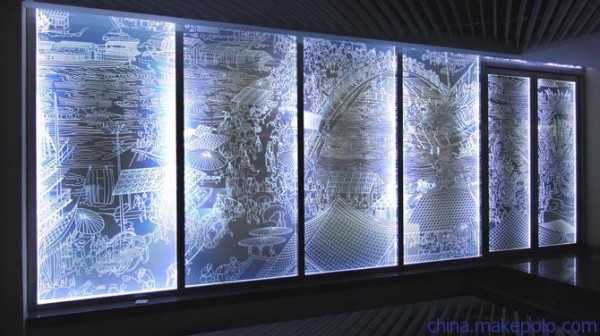 这些玻璃、水晶工艺品是用电脑控制的激光内雕机制作成的。激光机将一定波长的激光打入玻璃或者水晶内部,令其内部的特定部位发生细微的爆裂形成气泡,从而勾勒出预置形状。