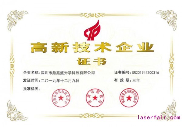 2020年是新的一年,深圳市鼎鑫盛光学科技有限公司踏上了新的征程。新年伊始,鼎鑫盛光学喜获佳音,凭借专业的研发队伍,雄厚的技术实力,持续的创新能力,科学的企业管理,被顺利地认定为国家级高新技术企业。公司于2020年3月31日收到了由深圳市科技创新委员会、深圳市财政局、国家税务总局深圳市税务局联合颁发的“高新技术企业”认定证书,由此正式迈入国家高新技术企业行列。
