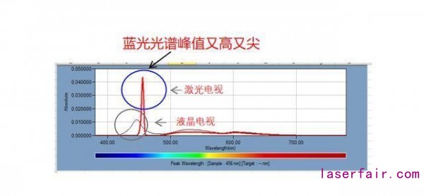 相比于RGB三原色的"三色激光电视","单色激光电视"不但成像效果不如前者,伤眼程度也是令人堪忧。由于光源主要为高速蓝色激光,所以这类激光电视的蓝光峰值极高,很容易导致人眼的黄斑区毒素增高,对视力造成不可逆的损伤。