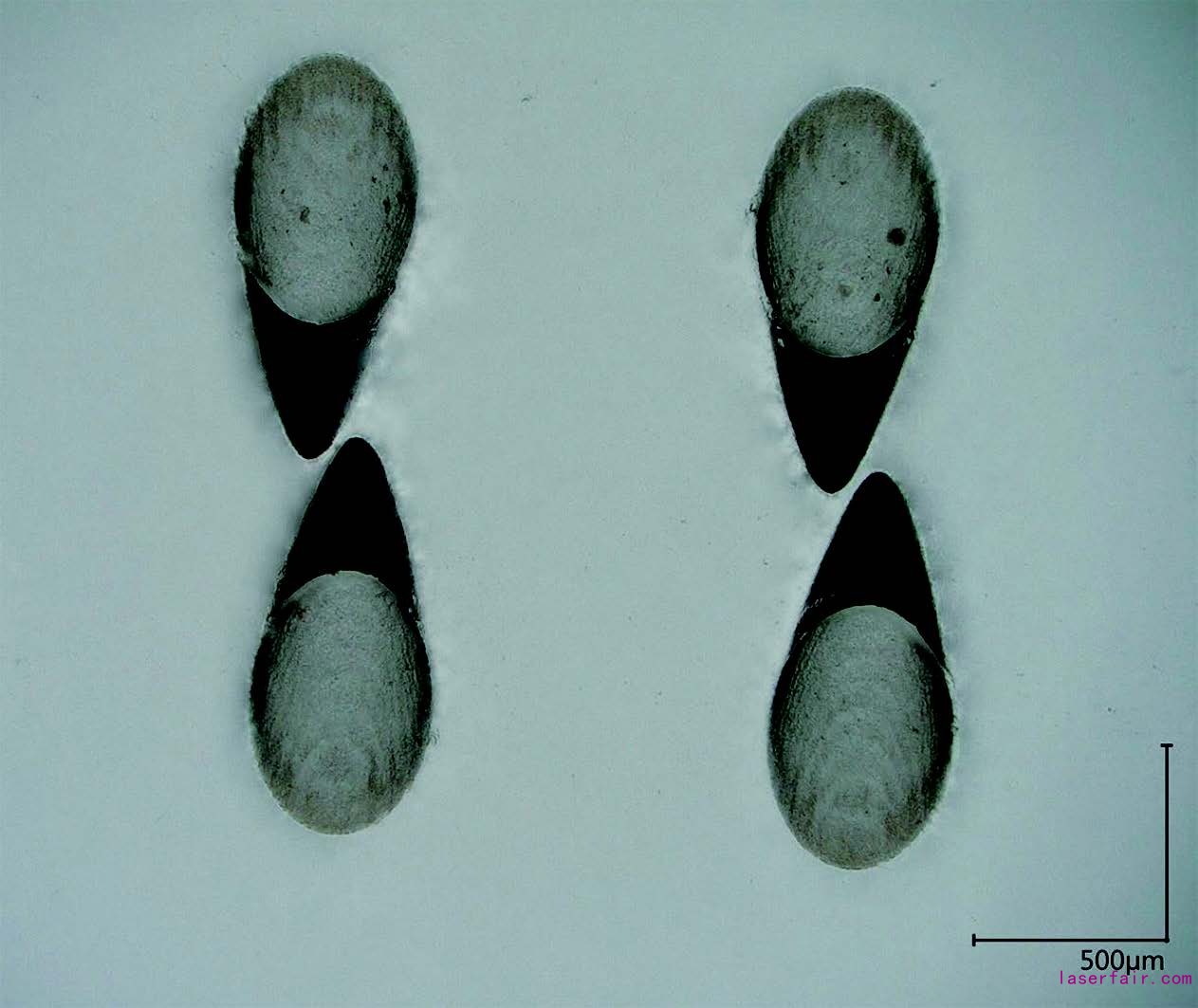 强度还取决于结构的方向。通过以相对于入射角的工作角度加工玻璃材料,它能够在玻璃中产生凹槽(图4)。由于塑料熔体的粘度很高,因此熔体流动可通过直径约500μm的孔状几何结构来实现。如果凹槽沿相反的方向对齐,那么当塑料玻璃粘接处于负载状态时,它将导致抗剪力和抗拉力。