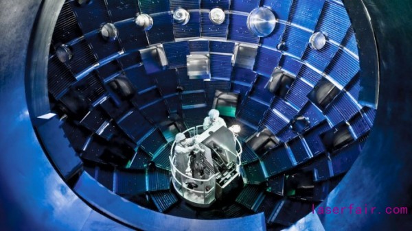 在美国国家点火装置的目标舱内,192束激光束集中在花椒大小的聚变燃料芯块上。图片来源:LAWRENCE LIVERMORE NATIonAL LABORATORY