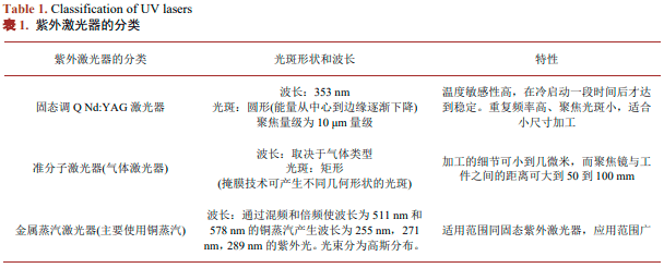 紫外激光加工方面有很多优点,也是目前科技信息发展中的首选技术。首先紫外激光器可以输出超短波长的激光,可以精准处理超小细微的材料;其次紫外激光的“冷处理”不会整体破坏材料本身,只是对其表面就行处理;再者基本无热损伤影响[7];一些材料对可见光和红外激光不能有效吸收导致无法加工,紫外最大的优势是基本所有的材料对紫外光吸收较为广泛[8]。紫外激光器尤其是固体紫外激光器的结构紧凑且体积小、简单好维护、易大量生产。紫外激光器在加工处理医用生物材料、刑事案件取证、集成电路板、半导体工业、微光元器件、外科手术[9]、通信和雷达、激光加工割方面应用十分广泛。