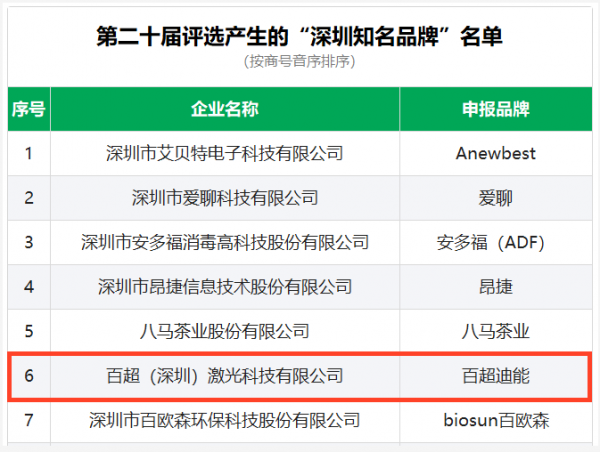 3月16日,第二十届“深圳知名品牌”通过长达半年的评审,终于尘埃落定,瑞士百超集团全资子公司:百超(深圳)激光科技有限公司凭借强大的品牌影响力、亮眼的市场表现、突出的自主创新能力等优势,成功入选“深圳知名品牌”。