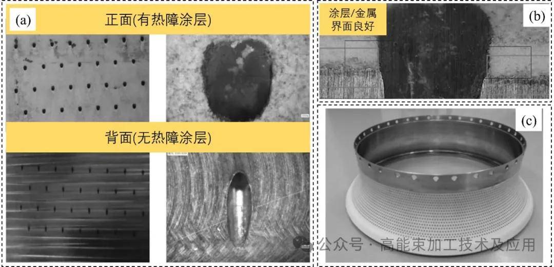 (c)带热障涂层火焰筒气膜孔一次性制孔实物