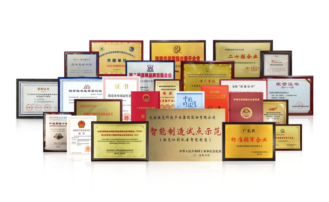 大族激光智能装备集团的扎实贡献与硬核实力,赢得了国家与社会的高度认可。公司不仅获评国家首批智能制造试点示范基地、国家高新技术企业,承担工信部智能制造新模式应用项目,主持国家科技重大专项,参与制定激光行业国家标准,还连续三届荣获工信部全国“制造业单项冠军企业”认定,并多次荣获“国家科学技术进步奖”“国际信誉品牌”“全国质量标杆”等权威奖项,光纤激光切割机更斩获“中国好设计奖” 及中国机床工具工业协会“产品质量十佳”“自主创新十佳” 等多项殊荣,彰显了公司在“中国智造”领域的标杆地位与科技担当。