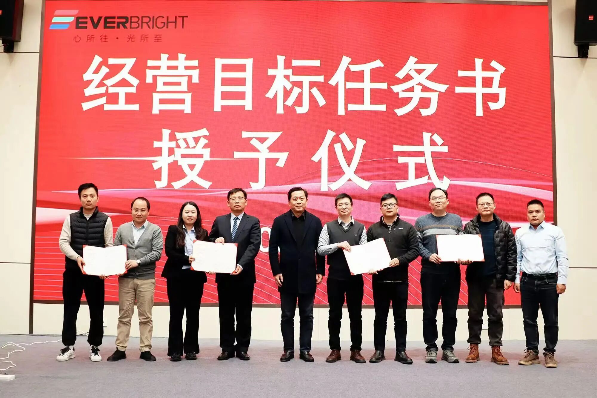 董事长总经理闵大勇为各事业部和销售团队颁发2026年经营目标任务书
