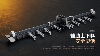 自动化上下料方案(选配):高速循环自动上料,上下料数量、 型号更加灵活,加工更便捷。减少吊装频次,保障加工安全,生产更高效,实现重型管材的大批量自动化生产。