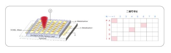 二维可寻址VCSEL正是这场革命的答案。该技术能够将发光芯片划分为众多独立可控的像素单元,实现对每个发光点的开关、功率和时序的精准编程,也是推动高线数雷达实现可靠量产的核心技术。