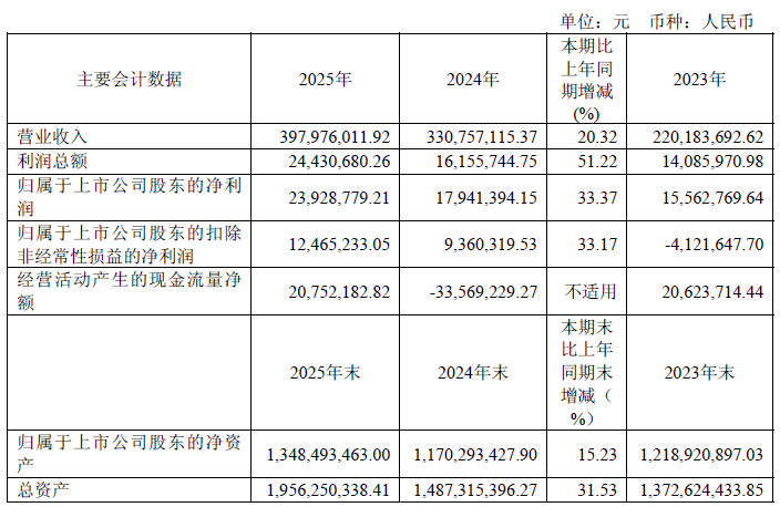 4 月 29 日,武汉长盈通光电技术股份有限公司披露 2025 年年度报告。报告期内,公司全年实现营业总收入 3.98 亿元,同比增长 20.32%;实现利润总额 2443.07 万元,同比增长 51.22%;归属于上市公司股东的净利润 2392.88 万元,同比增长 33.37%;归属于上市公司股东的扣除非经常性损益的净利润 1246.52 万元,同比增长 33.17%,盈利增速显著高于收入增速,盈利能力持续增强。