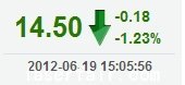 今 开: 14.68 成交量: 24382手 振 幅: 1.57% 最 高: 14.69 成交额: 3552.01万 换手率: 0.55% 最 低: 14.46 总市值: 64.61亿 市净率: 2.45 昨 收: 14.68 流通市值: 64.61亿 市盈率 TTM : 27.32...