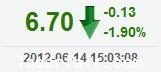 今 开: 6.82 成交量: 39812手 振 幅: 2.20% 最 高: 6.85 成交额: 2700.73万 换手率: 0.91% 最 低: 6.70 总市值: 29.27亿 市净率: 2.15 昨 收: 6.83 流通市值: 29.27亿 市盈率 TTM : 95.98...