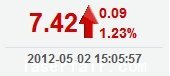 今 开: 7.47 成交量: 164768手 振 幅: 1.77% 最 高: 7.49 成交额: 12238.23万 换手率: 1.74% 最 低: 7.36 总市值: 77.49亿 市净率: 2.60 昨 收: 7.33 流通市值: 70.21亿 市盈率TTM: 22.72...