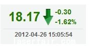 今 开: 17.00 成交量: 33209手 振 幅: 2.42% 最 高: 17.08 成交额: 5582.66万 换手率: 0.81% 最 低: 16.67 总市值: 74.36亿 市净率: 2.82 昨 收: 16.91 流通市值: 68.03亿 市盈率TTM: 29.45...