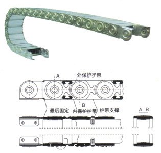 外形美观. 护板结构装置已经接受了15年以上的考验.极稳定,坚固的电缆保护,可达1000mm宽,在任意一个部位都能打开拖链。