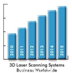 三维激光扫描设备能检测物体的形状并采集其外表面所处位置的数据。这一独特技术已广泛应用于离散和过程制造业、公共事业、建筑、考古、执法、政府和娱乐等诸多领域。ARC顾问集团的市场研究总监Ralph Rio,在其主笔的《三维激光扫描系统全球市场研究报告》中评析道,“三维激光扫描市场异常活跃。在工作流程、软件和易用性等技术上的突飞猛进促使其应用的范围迅速拓展。譬如说,运算能力和存储容量不断增强,其64位计算能支持大规模点云的应用。三维激光扫描在许多方面体现优势,可以实现生产率的大幅提升,总体工程造价的大幅减少。”