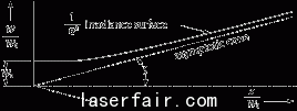 在光束腰(z = 0)的地方,波阵面更加平坦。同样地,在z = ∞处,波阵面也更加平坦(R(∞) = ∞).。随着光束从腰部传播,波阵面的曲率因此必须增加到最大值并且紧接着开始下降,如下图所示。Raleigh范围,考虑到在近场分布和中波段分布之间的区分线,是从波阵面曲率最大值腰部的距离。远场分布(数值查询激光器说明)必须在远大于ZR(通常大于10nbsp即足够)的时刻才能别测量。这是非常重要的区别,因为在一个光学序列中对点大小和其它参数的计算会在近场或者中场分布被使用时变得不准确。对于一个紧紧被聚焦的光束,从腰部(聚焦点)到远场的距离仅仅是几毫米或者更小。对于从激光直射光束,远场距离可以按米的数量级来测量。