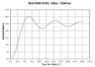 图1:REA10008-3P200工作在250μs,130A时退极化率与重复率的关系曲线。