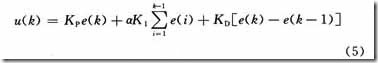 PID控制是一种技术成熟、应用广泛的控制方法,其结构简单,而且对大多数过程均有较好的控制效果。其离散PID控制规律为: