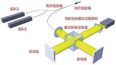 Fraunhofer研究所研发的这种检测系统基于短波激光干涉原理,主要由两个相干性激光部件组成。其中的第一个是纯光学的全光纤技术元件(SLD1),第二个则是Michelson激光干涉器(SLD2)。这种检测仪器的检测距离大约为500μm,清晰度达1nm的检测范围约80μm。