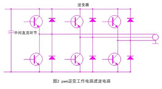 在pwm逆变工作电路上,为限制输入端谐波电流,可以在直流环节前端并联滤波电容器,如图2所示;同时还可以在直流母线上串联直流电抗器。另外,可以在电路的输入端加谐波滤波器,此方法加装简单、成本低、维修方便,但是容易受系统参数的影响。