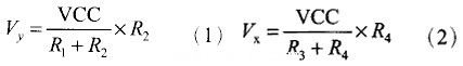 触摸屏的两个金属导电层分别用来测量X轴和Y轴方向的坐标。用于X坐标测量的导电层从左右两端引出两个电极,记为X+和X-。用于Y坐标测量的导电层从上下两端引出两个电极,记为Y+和Y-。这就是四线电阻触摸屏的引线构成。当在一对电极上施加电压时,在该导电层上就会形成均匀连续的电压分布。若在X方向的电极对上施加一确定的电压,而Y方向电极对上不加电压时,在X平行电压场中,触点处的电压值可以在Y+(或Y-)电极上反映出来,通过测量Y+电极对地的电压大小,便可得知触点的X坐标值。同理,当在Y电极对上加电压,而X电极对上不加电压时,通过测量X+电极的电压,便可得知触点的Y坐标。测量原理如图1所示。
