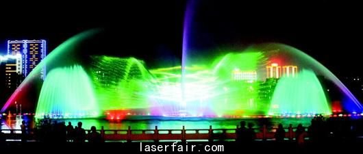 昨日,天门市首个水幕激光音乐喷泉在陆羽故园试运行,引来众多市民观看。 该喷泉利用彩色激光照射在喷泉水幕上产生字体和图像,配上音乐,如同一出声光电的动感电影。