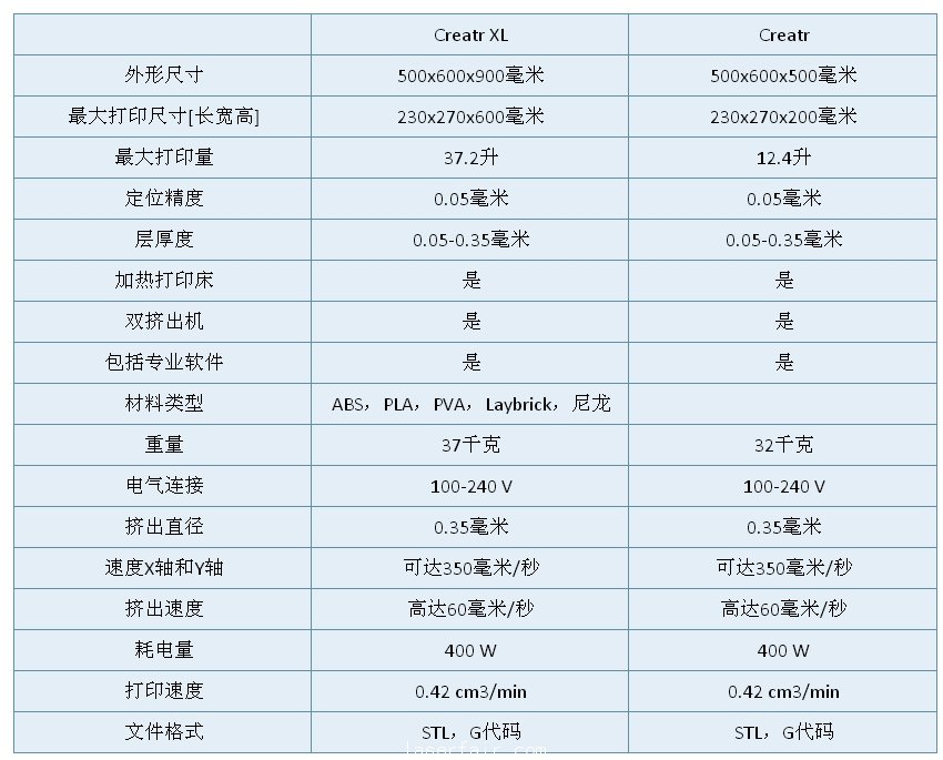 该Creatr XL售价为3999欧元(不含税),价格是Creatr 3D打印机的两倍多(1500欧元/不含税/双挤出机)。