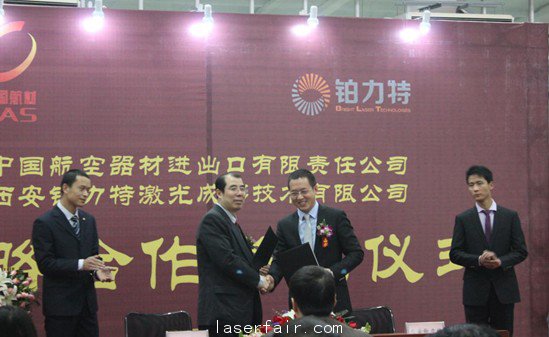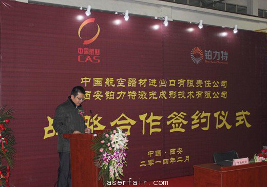 2月21日下午三时,中国航空器材进出口有限责任公司(以下简称“中航材有限公司”)与西安铂力特激光成形技术有限公司(以下简称“西安铂力特有限公司”)就“联合组织空中客车、SNECMA工业合作”项目举行了签约仪式。西安高新区材料园主任魏海平、副主任毋建录等领导,法国赛峰集团公司亚太采购负责人克里斯缇娜•苏瑞翁,以及签约双方参加了签约仪式。