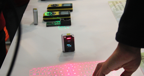 在本次光博会展会现场,有一个不起眼的小玩意却吸引了不少人的目光,看起来像一个打火机或者老式的MP3,这是来自台湾异奇科技的3D虚拟激光键盘,轻巧便携,不限时间和场地,只要一个桌面便可投影出一个键盘,采用蓝牙连接上平板电脑或者智能手机上,一个移动办公室就诞生了,时尚潮人的必备利器。