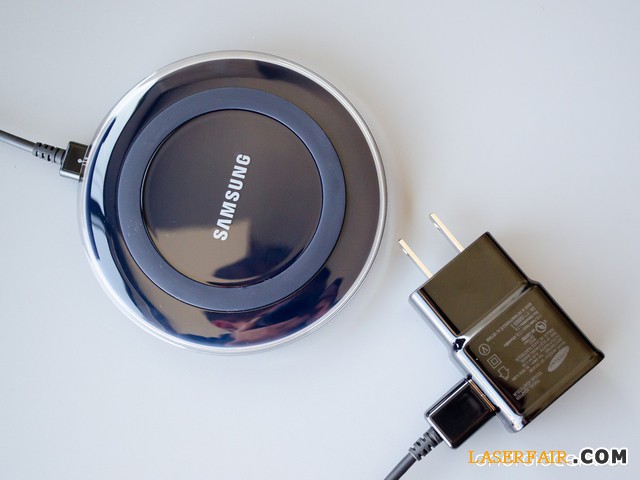 三星全新的Qi无线充电板随三星GALAXY S6/S6 Edge一起发布,双色设计的充电板采用飞碟造型,周边设计了一圈LED灯可以用来提示充电过程,并且可以以5V/