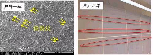 2013年,在对组件进行的随机抽样检测中,尽管肉眼看到的外观并无显著变化,但通过显微镜可清楚地观察到背板表面已经出现了大量微裂纹。