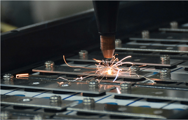 在动力电池的生产中使用激光焊接的环节在电芯组装环节与电池PACK环节。