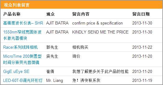 查询激光、光电产品规格资料,并发起留言,您的求购信息将第一时间传达到展商手中,且回复邮件通知您。