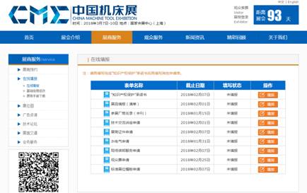 “在线填报”的表单中,共有9项内容,其中“知识产权保护”承诺书、参展厂商名录(会刊)、展商证件申请、水电气申请、标准展位楣板申请为必填内容,其余几项如涉及需填写;