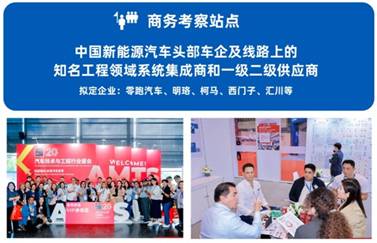 ◼成为商务考察站点之一:通过技术展示及精准的商务对接,直面1000+海外车企高层与决策人员,助您开拓海外目的地市场。
